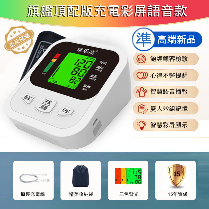 12分鐘前【終身質保】美國進口醫用精準電子血壓計 一款為#老人 貼心設計的血壓計 一鍵精準測量,全程語音播報 - 彩色螢幕語音全功能款 (1入组)