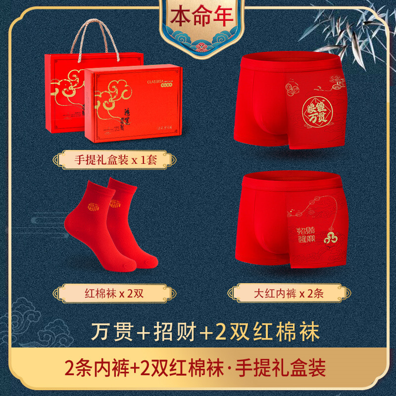 5分鐘前【本命年必備】龍年内褲大紅色男士内褲莫代爾平角褲四角褲套裝 - 【買一贈一,2盒裝】僅需NT$1098(均價NT$549)