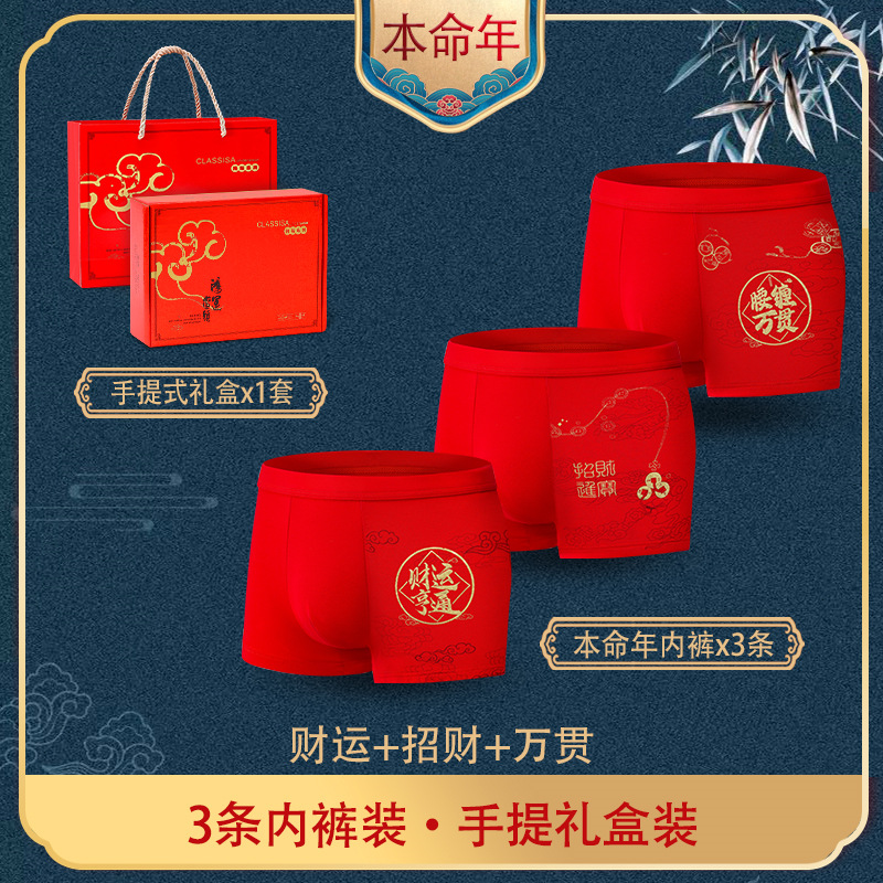 12分鐘前【本命年必備】龍年内褲大紅色男士内褲莫代爾平角褲四角褲套裝 - 【買一贈二,3盒裝】僅需NT$1240(均價NT$413)