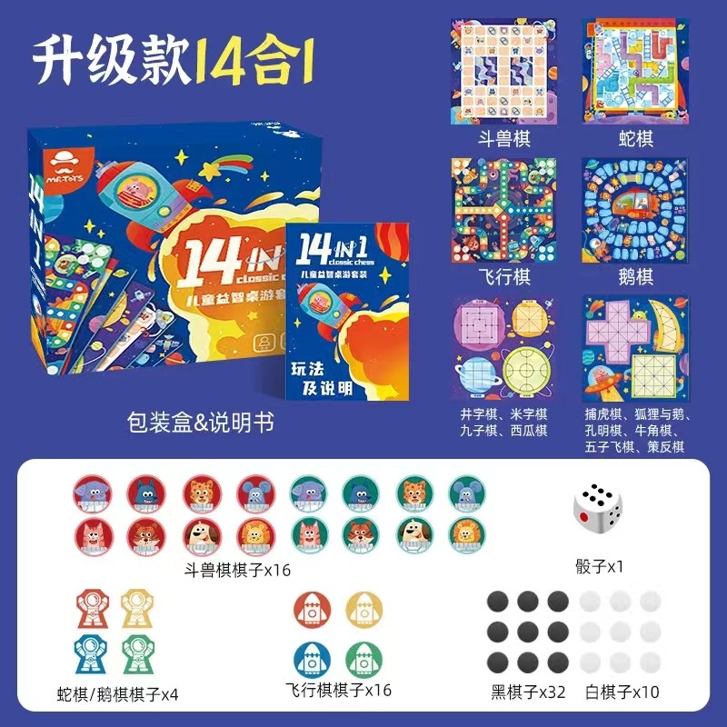 半小時前【美國Mingta】十四合一益智派對棋!寶貝越玩越聰明!市售最好玩益智棋! - 益智派對棋【1組】 一款孩子永遠玩不膩的棋組😍