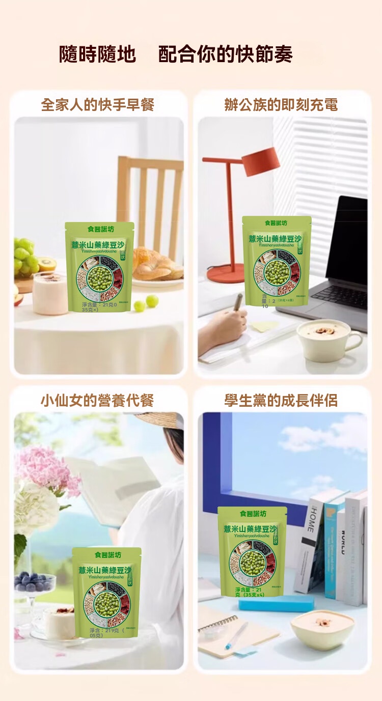 7分鐘前養生精選!薏米山藥綠豆沙 - 維生素滿點,清爽滋補甜品 - 【買四送二】養顏輕體套餐-共六袋NT$1298